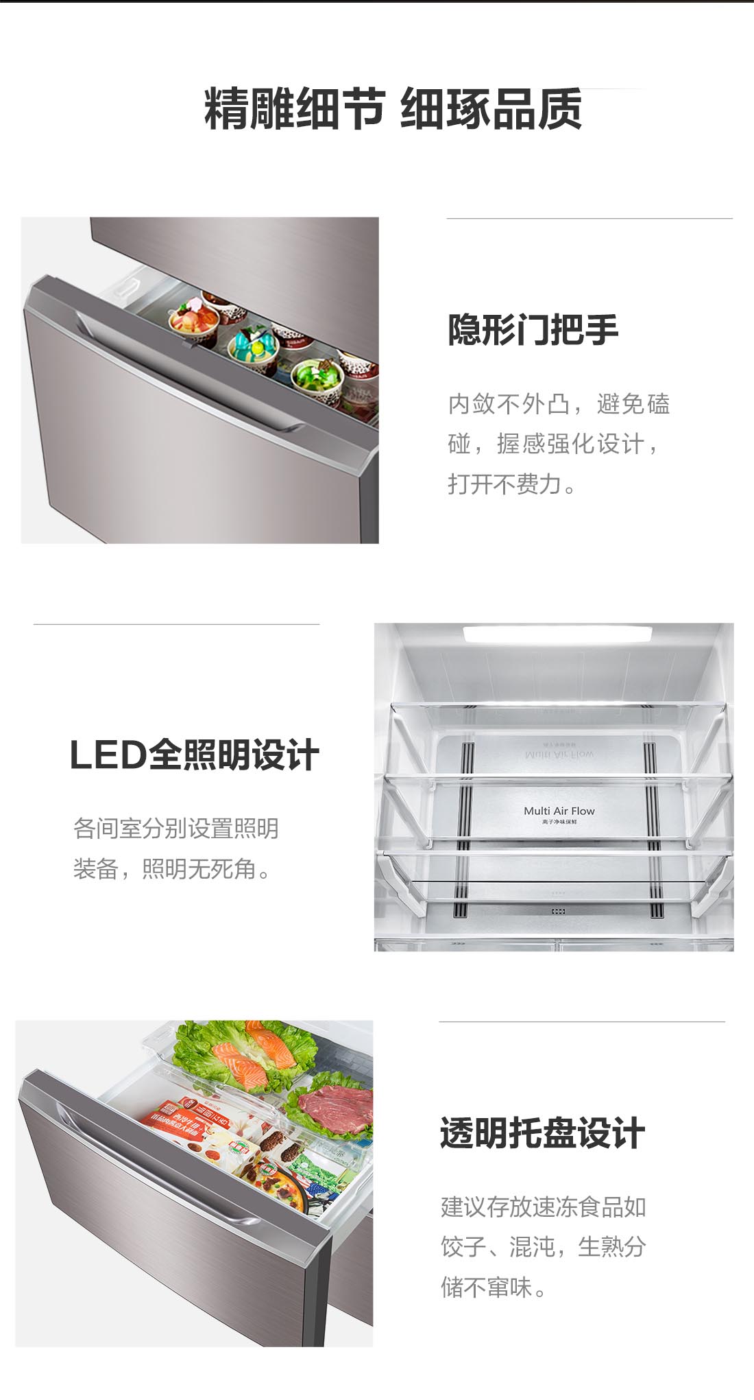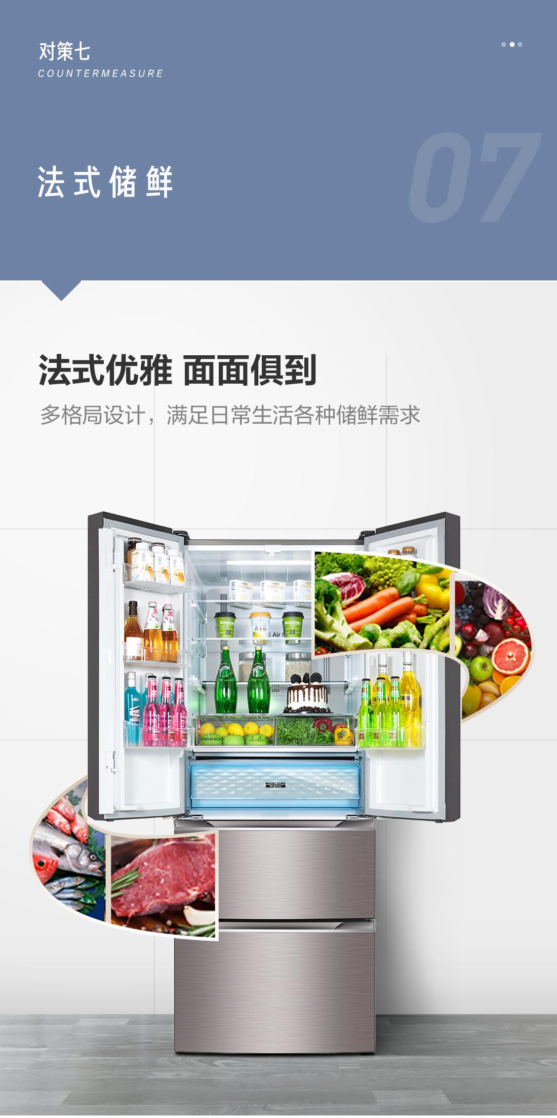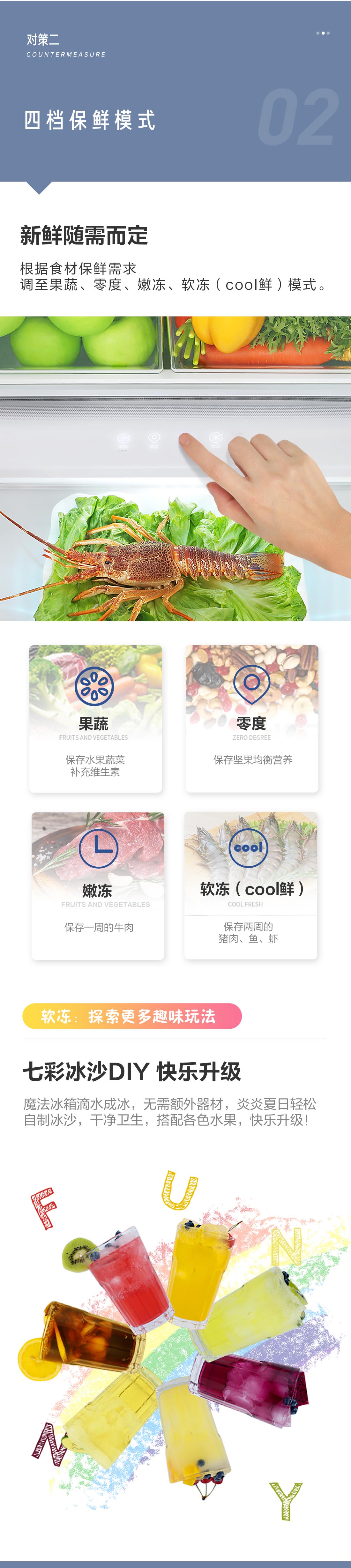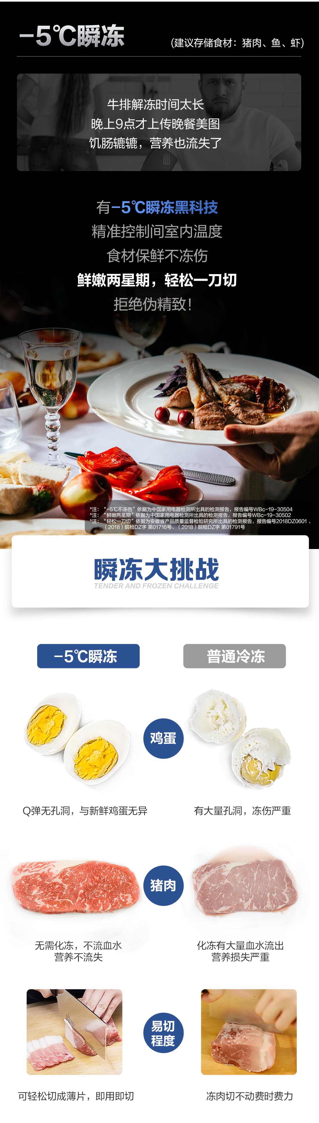 搭載-5℃瞬凍黑科技,鮮嫩兩星期,輕松一刀切。細胞級養(yǎng)鮮,營養(yǎng)流失少。搭載-3℃嫩凍黑科技,食材不結冰,鮮嫩一整周。智能全變頻技術,恒溫保鮮,節(jié)能靜音。