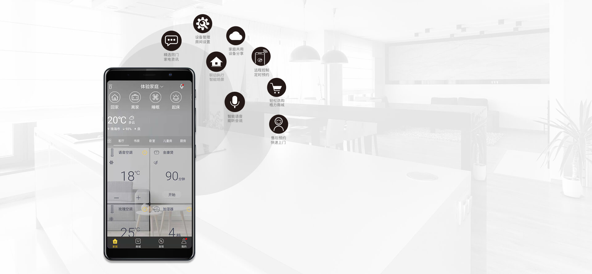 遠(yuǎn)程控制,語(yǔ)音控制,遙控器控制,定時(shí)開關(guān).搭配格力智能家電,定制專屬場(chǎng)景聯(lián)動(dòng)