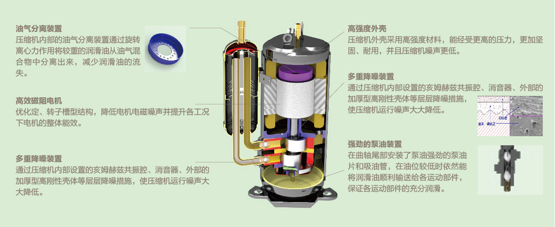 外機(jī)、內(nèi)機(jī)均采用直流電機(jī),相對普通電機(jī)效率提高30%以上;電機(jī)在高溫高濕環(huán)境下能持續(xù)穩(wěn)定運行,內(nèi)電機(jī)在-20℃~40℃、外電機(jī)在-20℃~60℃范圍內(nèi)均可持續(xù)穩(wěn)定運行。